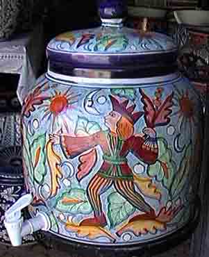 Finish: lead free glaze over hand painted clay
