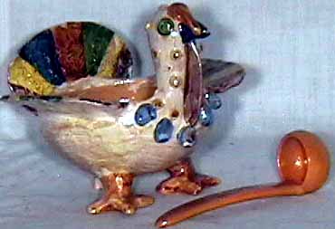 Hand shaped and hand painted salsa dish with clay spoon
