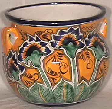 FLORAL PLANTER with stand Dimensions (cm): 35DIAx30h planter47h standFinish: glaze over hand painted clay;heavy iron standCode: 1013000015