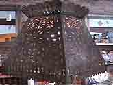 and tin and glass wall sconces. Hand punched tin stars and hanging